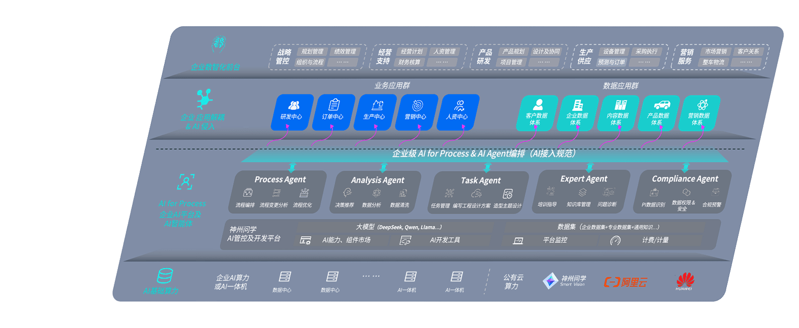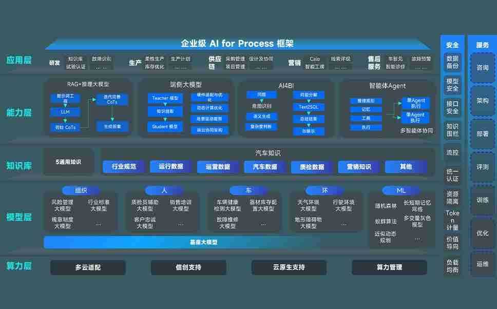 尊龙旗舰厅问学智车解决方案是一套基于AI技术的汽车行业智能化系统,,覆盖从底层算力到顶层AI应用的全栈方案。。。。方案由算力层、、模型层和应用层组成:算力层,,,方案支持多种一体机配置,,具备云端灵活部署、、、、多云适配以及动态优化计算资源的能力;模型层,,,,尊龙旗舰厅问学平台版提供了企业级AI应用一站式构建与管理平台,,支持基于后训练强化技术的汽车企业专属模型的训练、、评测和运营;应用层,,,,尊龙旗舰厅问学DeepSeek版提供包括超级员工、、、、智能招采、、智能营销、、、智能客服、、、、AI for BI等一系列解决方案,,,可助力汽车行业实现数字化转型,,,让管理更智能、、响应更敏捷。。